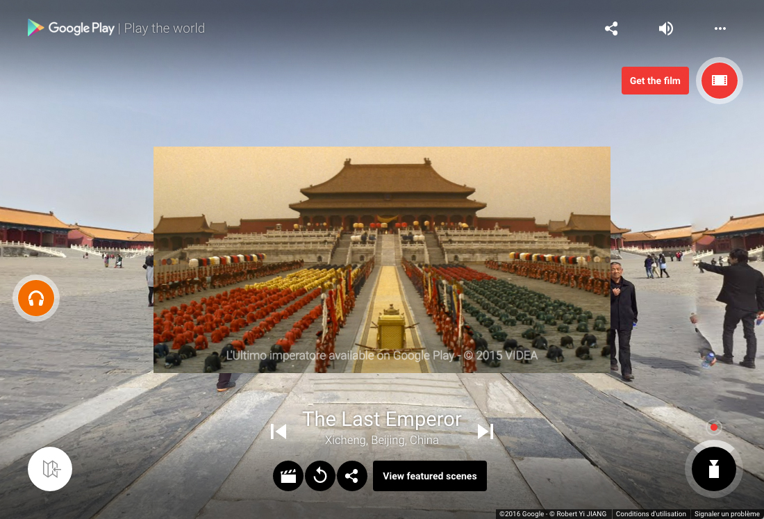 Scrolling the globe to locate iconic shoot locations, users navigate seamlessly through an action-packed library of over 500 movies. Using Google Street View and YouTube, each famous movie moment appears with an anamorphosis effect in its real world location.
